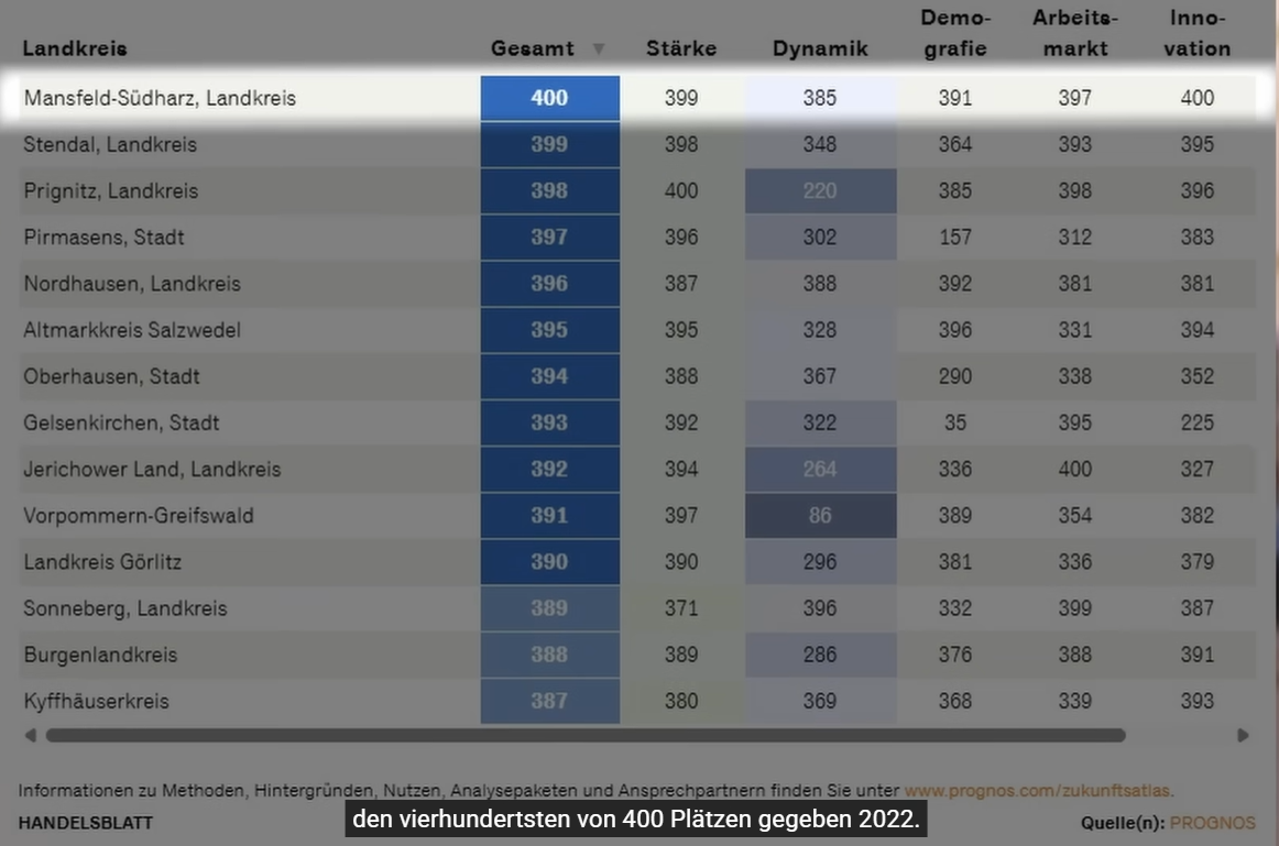 - Die Stadt gehört zum Landkreis Mansfeld-Südharz und der belegt im Zukunftsatlas Platz 400 – von 400!